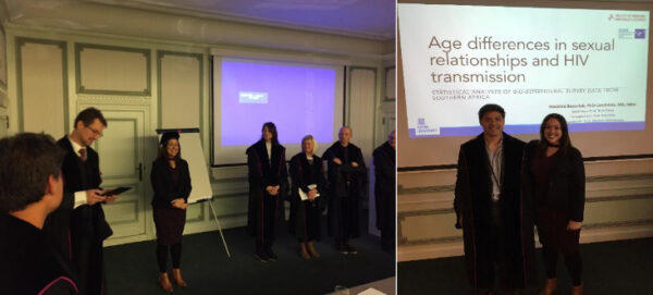 Former SACEMA researcher and now SACEMA Research Associate, Roxanne Beauclair graduated with a PhD in Health Sciences at Ghent University. Her thesis entitled “Age Differences in Sexual Relationships and HIV Transmission: Statistical Analyses of Bio-Behavioural Survey Data from Southern Africa”, was supervised by Professors Wim Delva, Niel Hens and Marleen Temmerman.